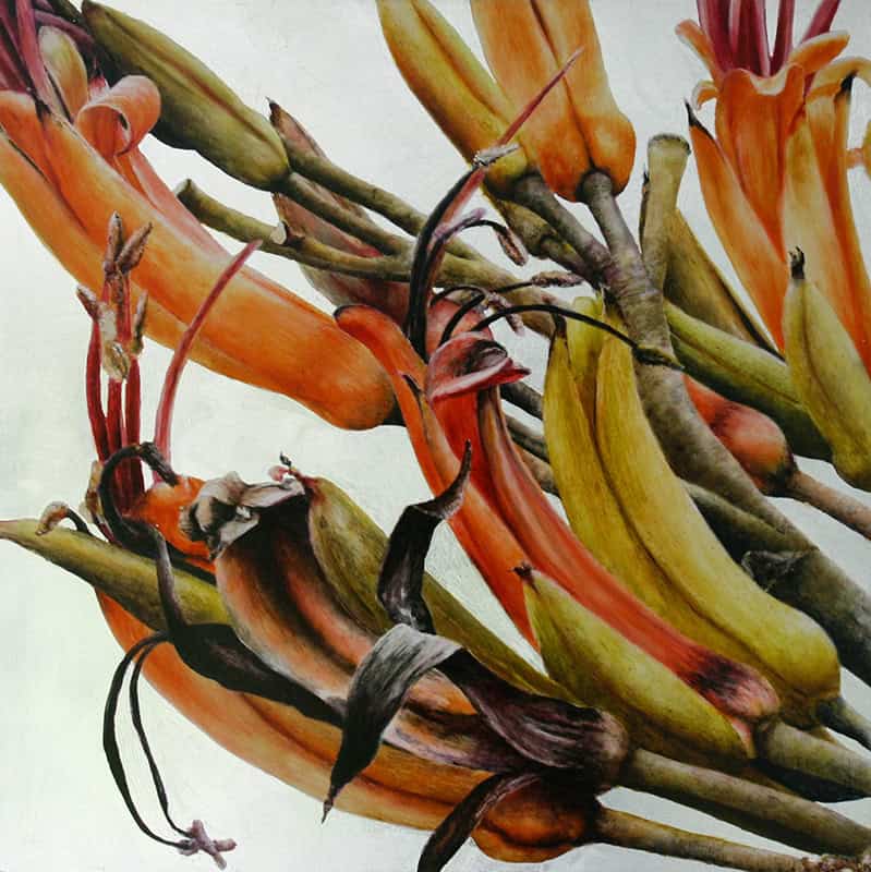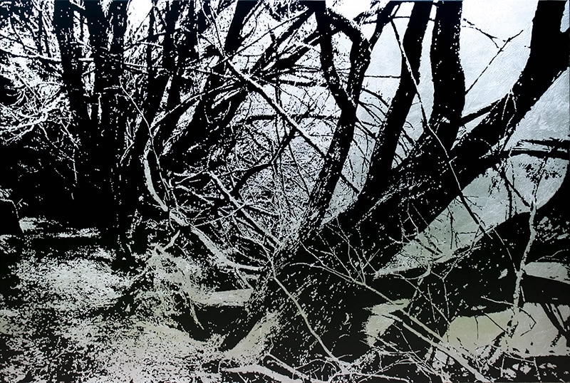 / Acrylic and silver leaf on board