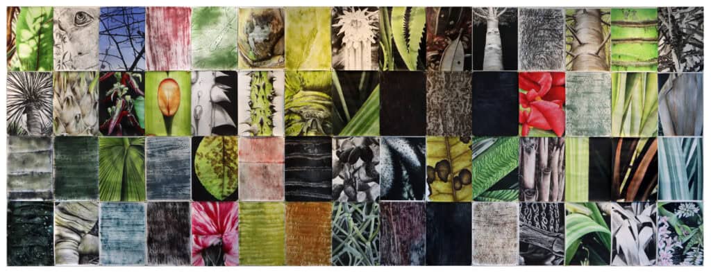 My time as Artist in Residence at the Auckland Botanic Gardens started in December 2022, with a retrospective exhibition, a selection of works from the last 20 years. The most recent works were from my 2022 exhibition at Föenander Gallery. The exhibition represented various directions I’ve taken over the years including frottage pieces and silver leaf images.